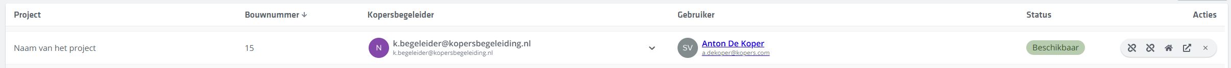 Het is hier ook mogelijk om voor een kopersbegeleider hier de status van een Woning aan te kunnen passen. Klik op een status van een specifieke Woning om deze aan te passen naar één van de overige beschikbare statussen.